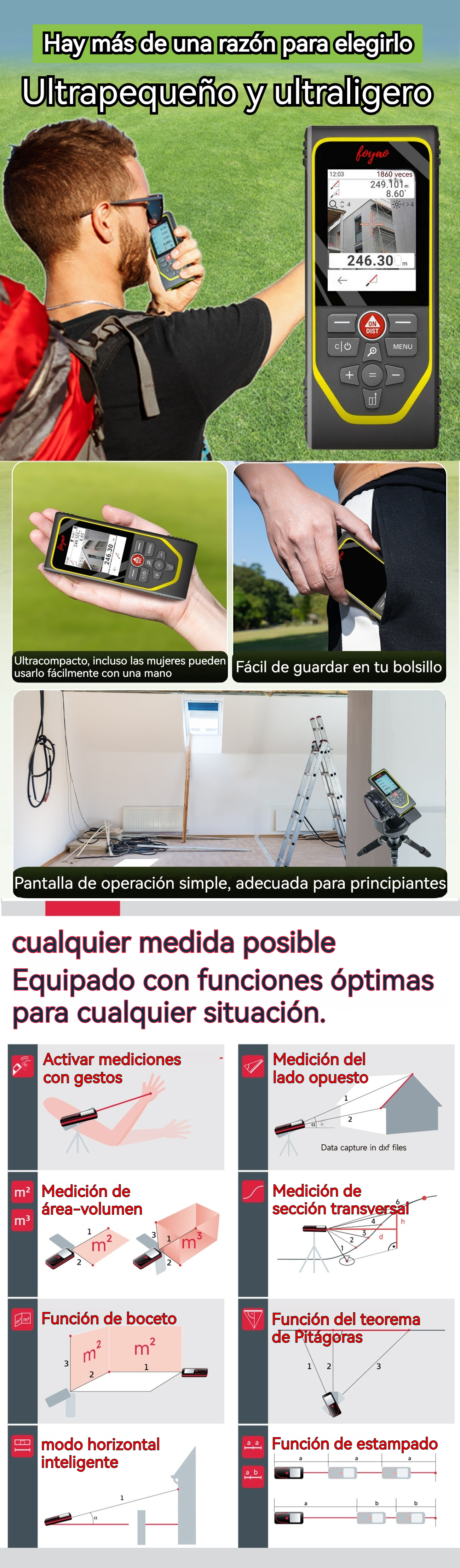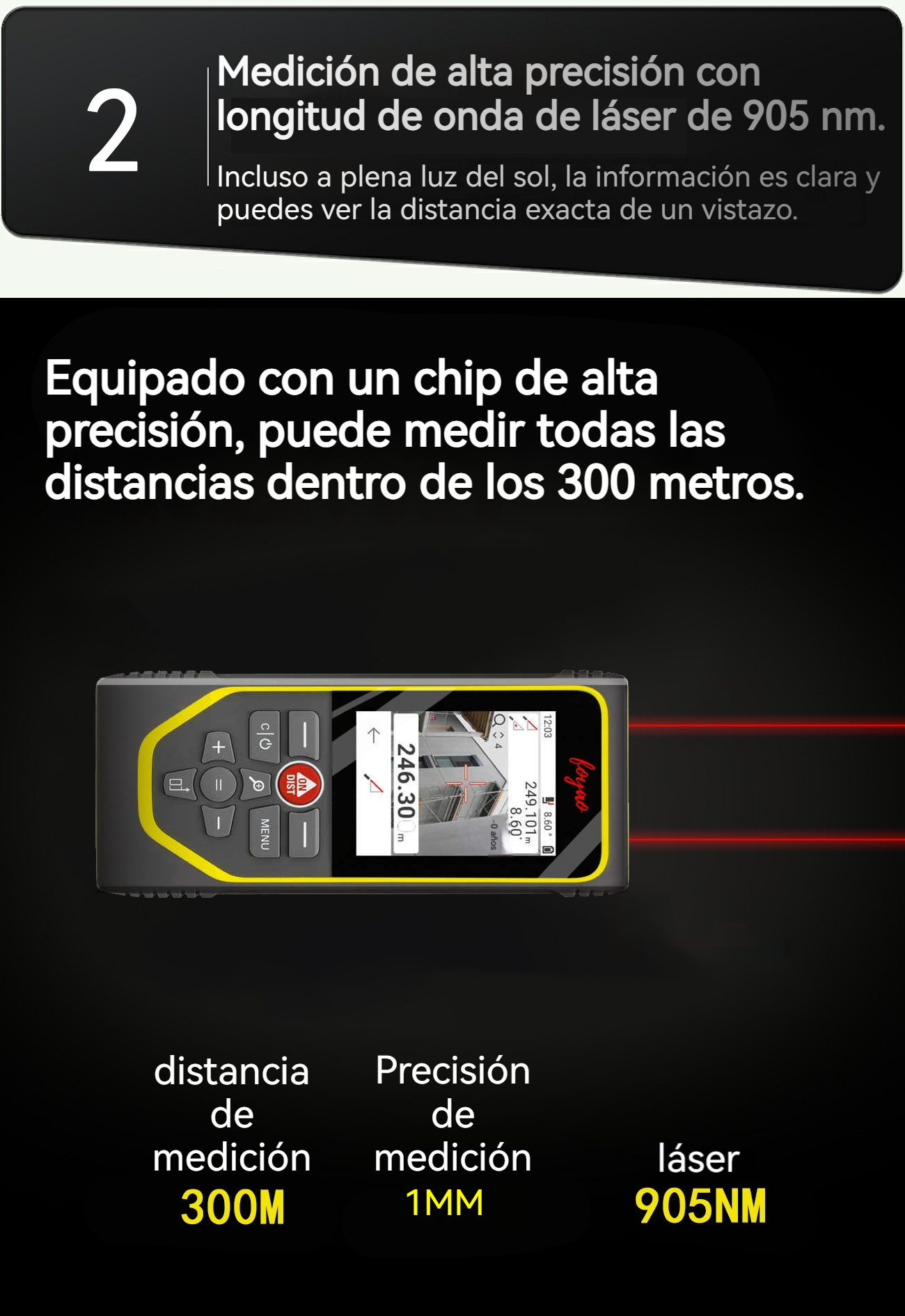 Miernik laserowy zasięgu 300 metrów, wysoka precyzja do użytku wewnętrznego i zewnętrznego, elektroniczny miernik podczerwieni do pomiarów nieruchomości
