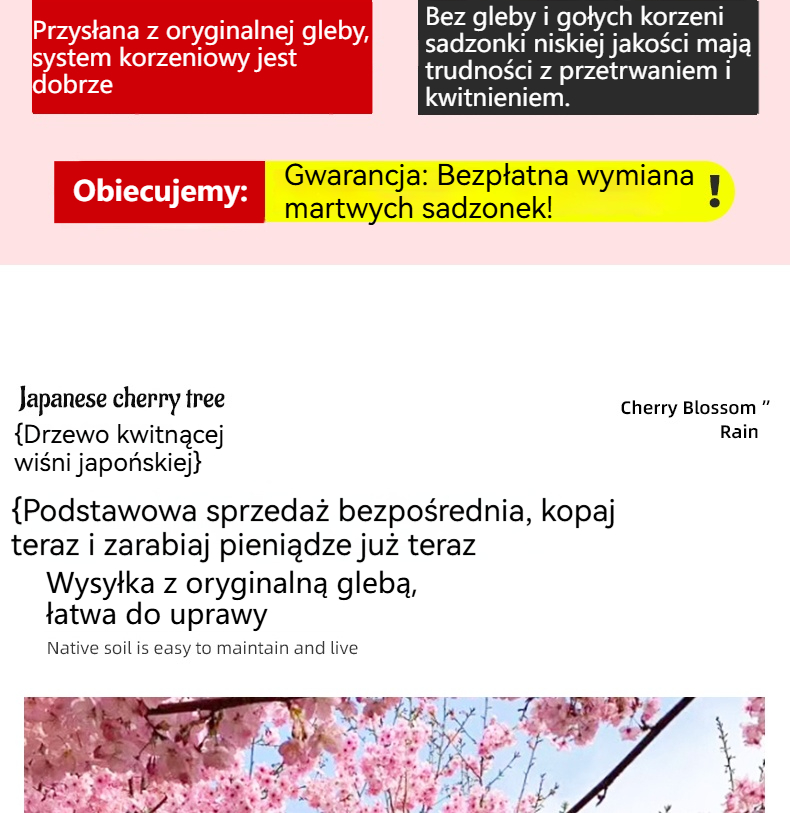 Wyselekcjonowane sadzonki wiśni japońskiej